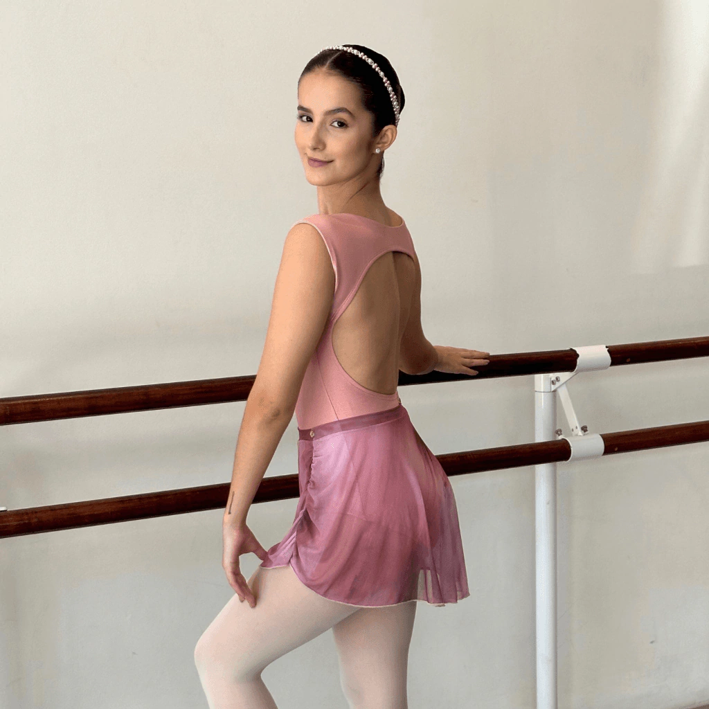 A saia de tule drapeada é o toque final para completar seu look do ballet! A versão aquarela possui uma estampa exclusiva para você se apaixonar toda vez que vestir.