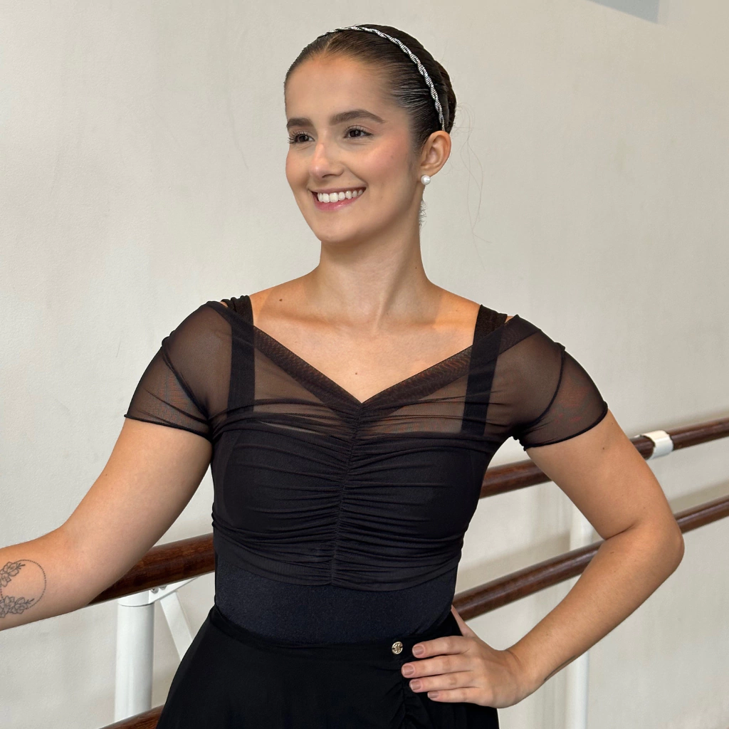 Sobreposição de Tule Franzida - Preto - é a peça que vai dar um up nos seus looks de ballet! Ideal para usar em cima dos collants, ela traz aquele toque de charme e sofisticação que amamos. O detalhe franzido deixa tudo mais estiloso e confortável, perfeito para se movimentar durante as aulas. Com essa sobreposição, você pode criar várias combinações e arrasar no palco ou na sala de dança! Características: - Tule leve e macio - Design versátil que se adapta a diferentes estilos OBS: As peças são produzidas artesanalmente. Pequenas mudanças podem ocorrer ocasionalmente.